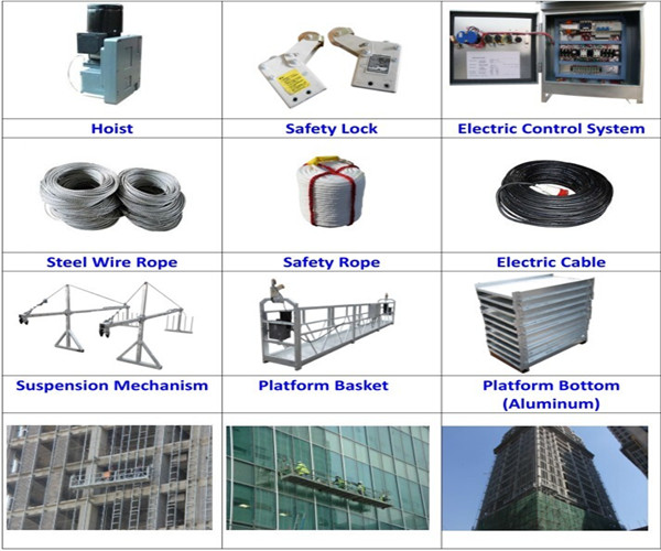 Safety lock fasten the steel rope immediately once the suspended platform tilts or the steel rope slips out of the hoist;